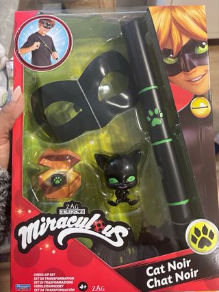 Set de disfraz de Cat Noir de Miraculous. - Incluye máscara. - Incluye bastón. - Incluye figura de Plagg. - Incluye anillo. Nuevo, sin estrenar