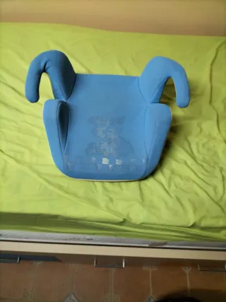 Asiento elevador para coche en color azul. - Diseño con alas laterales. - Estampado de cuadros plateados en la parte inferior.