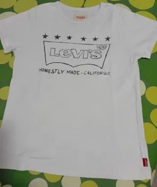 Camiseta blanca de Levi's con un diseño gráfico. - Logo de Levi's. - Estrellas decorativas. - Texto HONESTLY MADE - CALIFORNIA. - Calidad 7/10 - Envío rápido 12/24h - Respondo rápido si tienes alguna duda no dudes en preguntar