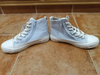 Zapatillas altas de Zara, nuevas sin estrenar y con etiquetas. Color rosa palo y azul claro, talla 34. Cierre de cordones con cremallera lateral. Suela de goma blanca.