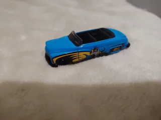 Coche de juguete Hot Wheels con diseño de Batman. - Color azul vibrante. - Detalles gráficos de Batman y llamas. - Modelo descapotable.