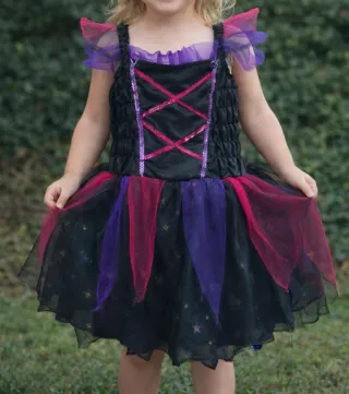 Disfraz de brujita – talla 2/3 años 🧙♀️✨ Precioso disfraz con falda de tul en negro, morado y fucsia, lleno de detalles brillantes. Ideal para Halloween, fiestas del cole o juegos de disfraces. Es cómodo, ligero y queda monísimo puesto. ✅ Talla 2-3 años ✅ En buen estado ✅ Muy vistoso y con colores preciosos ✅ Fácil de poner