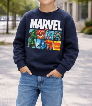 Sudadera azul marino con estampado de superhéroes de Marvel. - Diseño con varios personajes icónicos. - Talla 9 años.