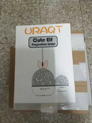 Lámpara de proyección infantil de la marca URAQT. - Diseño con orejas de conejo. - Estrellas y remolinos decorativos. Sólo abierto para verificar su contenido y su correcto funcionamiento, nunca más se ha usado