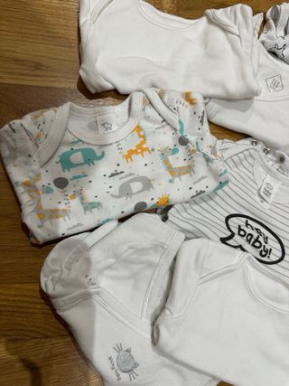 Lote de bodies de manga corta para bebé, talla 3-6 meses (68 cm). - Variedad de diseños y estampados. - Tejido suave y cómodo para la piel del bebé. - Perfectos para el día a día.