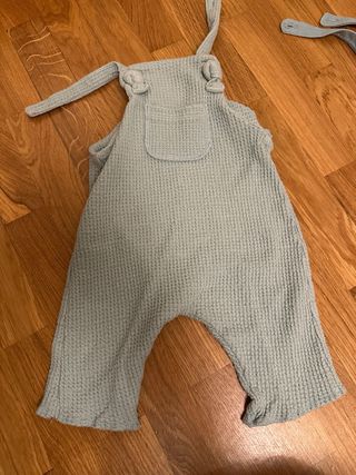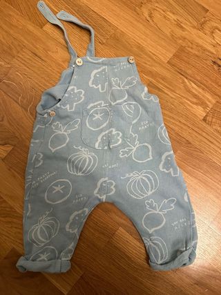Peto de bebé de la marca Zara, talla 3-6 meses. Es una prenda cómoda y versátil. - Tejido de canalé. - Tirantes ajustables con botones. - Bolsillos delanteros.