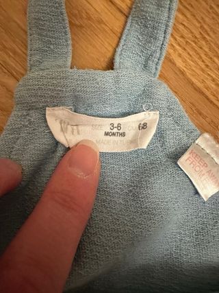 Peto de Zara para bebé, talla 3-6 meses (68 cm). Confeccionado en tejido de nido de abeja. - Color grisáceo. - Detalle de bolsillo en la parte delantera. - Tirantes con nudos decorativos.