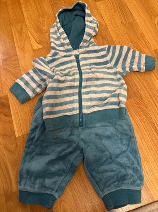 Conjunto de chándal para bebé de 3 meses. - Sudadera con capucha y cremallera. - Pantalón a juego. - Diseño de rayas en la sudadera. - Material suave y cómodo.