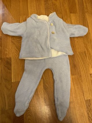 Conjuntos de punto de la marca Visi Bebé. - Talla 1 mes. - Color azul claro. - Incluye jersey y polainas. - Detalle de pompón en el jersey.