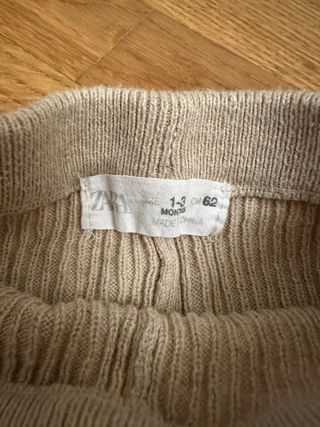 Leggings de punto para bebé de Zara, talla 3 meses. Son de un color beige muy combinable. - Tejido de canalé. - Cintura elástica. - Puños doblados con un botón.