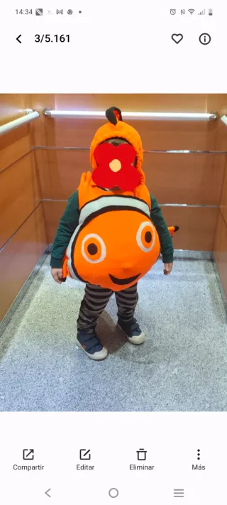 Disfraz de Dory y Nemo, el entrañable personaje de Buscando a Nemo. Perfecto para fiestas o para jugar. Hecho a mano - Talla: 2-5 años. - Incluye gorro y traje completo. - Diseño fiel al personaje.