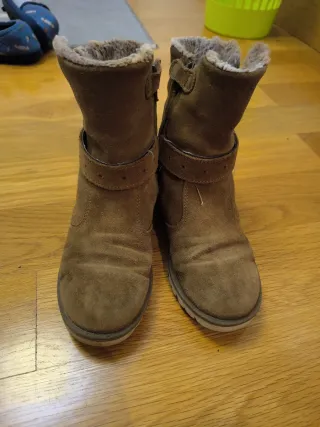 Botas de invierno para niña de la marca Primigi, ideales para mantener los pies secos y calientes. - Exterior de ante y tejido. - Forro interior cálido. - Suela de goma antideslizante. - Cierre de cremallera lateral.