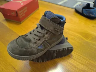 Botas de niño con tecnología Gore-Tex para mantener los pies secos y calientes. - Color marrón y azul. - Cierre de velcro y cordones. - Caña alta. - poco usados
