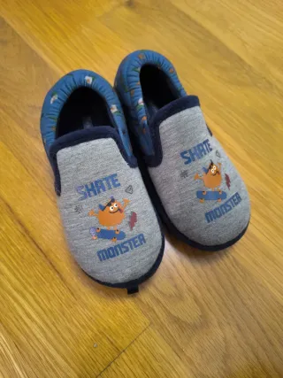 Zapatillas de casa para niño, talla 31, con un divertido diseño de monstruo patinador. - Estampado de monstruo Skate Monster. - Interior forrado para mayor comodidad. - Color azul y gris.