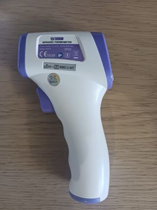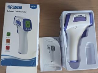 Termómetro infrarrojo digital modelo HW-F7. - Diseño ergonómico - Pantalla digital para lectura de temperatura. - Incluye pilas, manual de instrucciones y caja original.