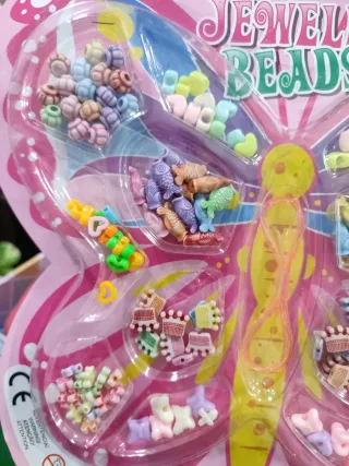 Kit de abalorios y cuentas en forma de mariposa para crear tus propias joyas. - Incluye una gran variedad de cuentas de colores y formas. - Ideal para manualidades y diseño de bisutería. - Presentado en un práctico empaque. - Fomenta la creatividad y la motricidad fina.