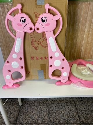 Reductor de WC con escalera plegable, ideal para niños en etapa de aprendizaje. Diseño infantil de jirafa en color rosa con detalles en blanco. Cuenta con escalera ajustable, asiento acolchado, asas laterales y base antideslizante para mayor seguridad. Sistema plegable que ocupa poco espacio. Incluye soportes laterales, asiento reductor, escalón, tornillería y manual ilustrado. Nuevo, sin uso, con protectores y caja original. 📦 Envío rápido 💬 Consulta sin compromiso 💸 Escucho ofertas #ReductorWC #EscaleraInfantil #BañoNiños #AprendizajeBaño #Niños #Jirafa #SeguridadInfantil #Independencia #Vinted #Wallapop