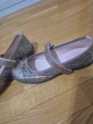 Preciosos mocasines para niña con un diseño muy llamativo. - Detalle de lazo en la puntera. - Tira de velcro para un ajuste seguro. - Acabado brillante y detalles de purpurina. Talla 36, solo un solo uso. Son de Pablosky