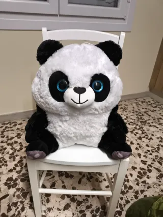 Adorable peluche de panda, perfecto para abrazar. Suave y tierno. - Color blanco y negro. - Ojos grandes y brillantes. - Patas con detalles morados. - Mide 40 cm.