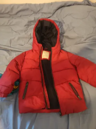 Chaqueta infantil Zara de color rojo, talla 5 años. Ideal para mantener el calor en días fríos. - Diseño acolchado. - Capucha integrada. - Cierre de cremallera. - Bolsillos laterales con cremallera. - Chaqueta infantil Quechua con polar térmico. Talla 4