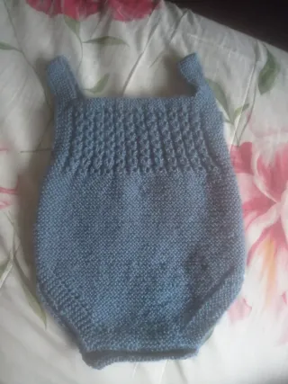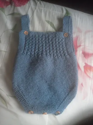 Precioso pelele de punto azul para bebé, ideal para los más pequeños. Confeccionado con cariño y atención al detalle. - Diseño con tirantes y botones. - Tejido suave y cómodo. - Detalle de punto texturizado en la pechera.