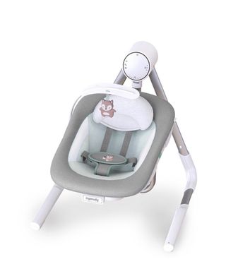 Hamaca eléctrica para bebé de la marca Ingenuity, con un diseño moderno y cómodo. - Asiento acolchado con cojín. - Arnés de seguridad. - Móvil con figura. - Patas antideslizantes.