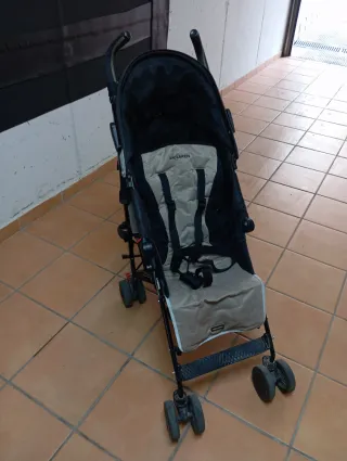 Carro de bebé McLaren en color beige y negro. - Asiento acolchado. - Arnés de seguridad de 5 puntos. - Ruedas delanteras giratorias. También incluye capazo con cogin inclinado para bebé que se acopla al carro McLaren. Se regala funda del carro de invierno, barra de paragolpes para el cochecito de paseo y añadido del todo para que el bebé pueda quedar más protegido aún del sol.