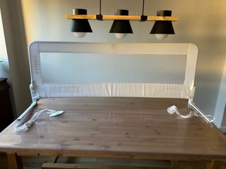 Barrera de seguridad para cama infantil de la marca Asalvo. Ayuda a prevenir caídas durante el sueño. - Estructura de metal y malla transpirable. - Incluye cintas de sujeción para el colchón.