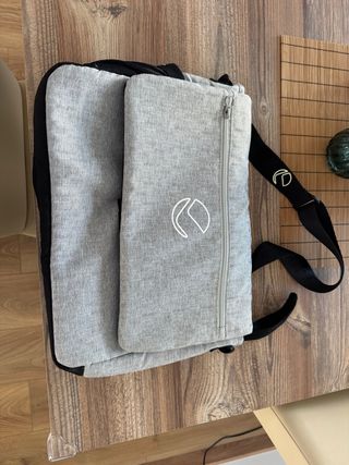 Bolso de carrito para bebé, diseño unisex en color gris. - Compartimento principal con cremallera. - Bolsillo frontal con cremallera. - Correa ajustable para colgar. Nuevo a estrenar. Sin uso
