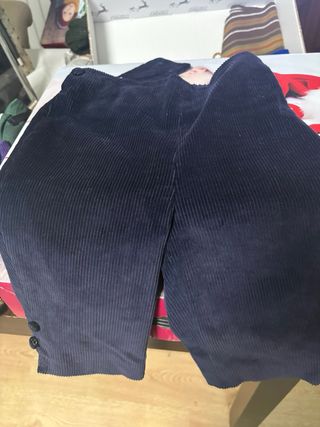 Pantalón de pana azul marino con cintura elástica. - Tejido de pana. - Cintura con cordón ajustable. - Detalle de lazo en el bajo.