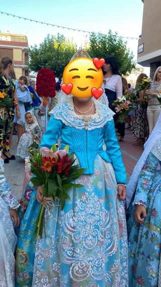 Traje fallera niña 5-6 años, zapatos forrados, espardenyas. Peinetas y aderezo ( falta 1 pendiente)
