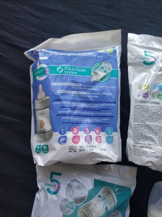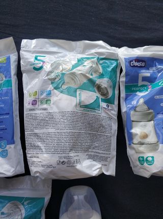 Biberón Chicco anticólicos Perfect 5,.de 0 a 6 meses. Tengo 4 lógicamente sin abrir, como aparece en la fotografía.