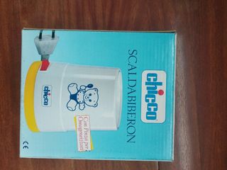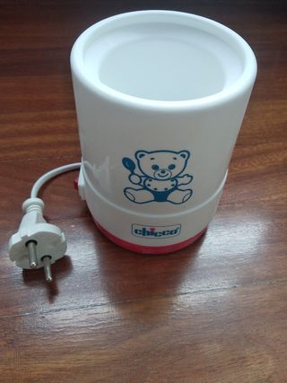 Calienta biberones de la marca Chicco, ideal para preparar la comida del bebé. - Diseño compacto y fácil de usar. - Incluye base y cable de alimentación.