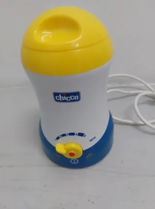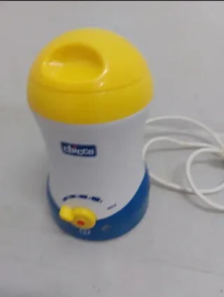 Calienta biberones de la marca Chicco en color blanco, azul y amarillo. - Diseño compacto y ergonómico. - Indicador de nivel de calentamiento. - Botón de control de temperatura. En buen estado.