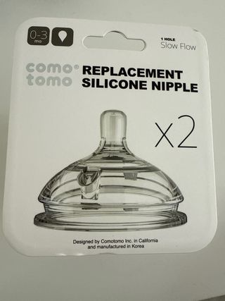 Pack de dos tetinas de reemplazo Comotomo de silicona. - Diseñadas para bebés de 0 a 3 meses. - Flujo lento (1 agujero). - Fabricadas en silicona. comotomo los biberones están diseñados para imitar la lactancia materna para ayudar a los bebés a pasar fácilmente del pecho al biberón y a la espalda. diseñado para enganchar: montículo verdaderamente ancho con diseño similar al pecho. ventilaciones anticólicos: rejillas de ventilación inteligentes y sin fugas para un flujo constante de leche sin el problema de los cólicos.