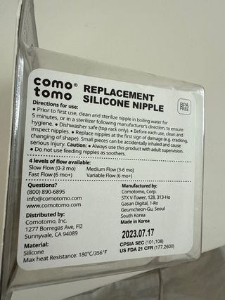 2 Tetinas Comotomo Silicona Flujo Lento 0-3 Meses