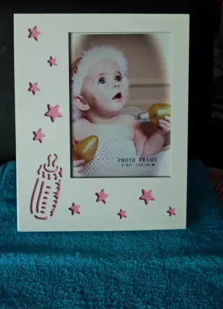 NUEVO POR ESTRENAR IDEAL PARA REGALO Perfecto para guardar un recuerdo especial. MARCO DE FOTOS INFANTIL LACADO EN BLANCO y ROSA. PARA LA PRIMERA FOTO DE TÚ BEBÉ. INXLUYE UN DISEÑO DE BIBERÓN TAMAÑO GRANDE. MEDIDA DE FOTO REAL 13cm.x18cm. 🍀MAS COSAS EN MI PERFIL🍀