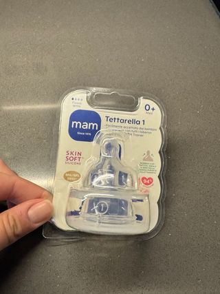 Tetina de repuesto MAM Tettarella 1, ideal para biberones y vasos de entrenamiento MAM. Sin estrenar. - Flujo lento. - Apta desde 0+ meses. - Material SkinSoft Silicone. - Libre de BPA/BPS.