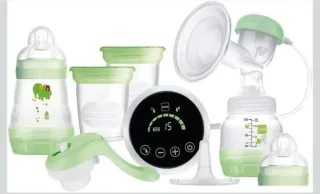 Sacaleches eléctrico de la marca MAM, ideal para la extracción de leche materna. Incluye varios accesorios para facilitar su uso y almacenamiento. - Diseño ergonómico. - Pantalla digital. - Varios niveles de intensidad. - Incluye biberón y recipientes de almacenamiento. - Modo eléctrico y manual