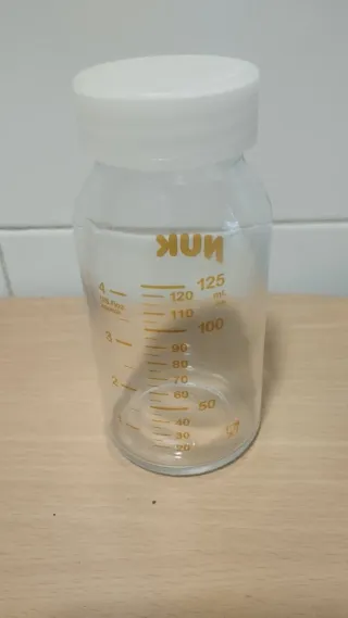 Biberones de cristal marca NUK, 125ml, en perfecto estado. Con su tapa pero sin tetinas. Compatible con sacaleches Medela. Ideal para sacar la leche y meter en el congelador directamente sin tener que pasar la leche a la bolsa. 5€ cada uno, en total tengo 6