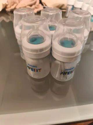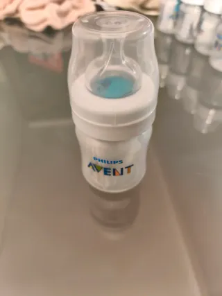 Lote de biberones diseñados para reducir los cólicos del bebé. Son cómodos de usar y fáciles de limpiar. Uno de ellos sin estrenar. Dos son para recién nacidos con tetina “0” y el tercero con tetina “3” para más de 4 meses. - Sistema anticólico avanzado. - Materiales seguros y duraderos. Si te interesa tengo las biberones y productos de bebe. Pregunta sin compromiso.