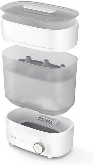 Esterilizador eléctrico a vapor Philips Avent. - Diseño compacto y ajustable. - Capacidad para todo tipo de biberones, sacaleches y accesorios. - Esterilización rápida y eficiente. - Mantiene los artículos estériles hasta 24 horas. - Libre de BPA.