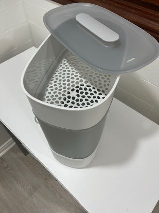 Esterilizador de biberones Philips Avent en color blanco y gris. Su diseño es moderno y funcional. - Tapa translúcida. - Bandeja interior con rejilla. - Asa integrada en la tapa. Comprado hace 2 meses y con escaso uso. Se vende con caja original de compra.