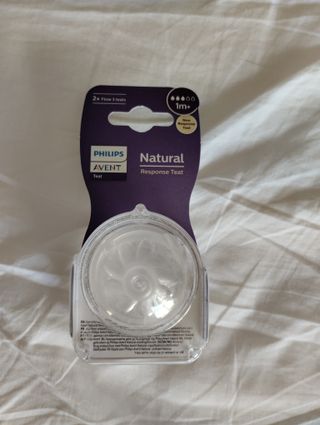 Pack de 2 tetinas Philips Avent Natural Response, flujo 3. - Diseñadas para bebés de 1 mes en adelante. - Tecnología Natural Response. Nuevas, nunca abierto. Envío disponible, se hacen envíos en 24/48h.