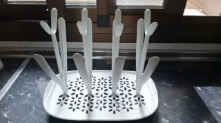 Práctico escurridor para biberones y accesorios de bebé. - Diseño flexible para organizar el secado. - Ideal para productos de alimentación infantil. - Diseñado para un secado higiénico.