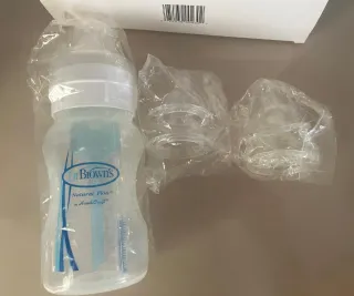 Biberón Dr. Brown's anticólicos con sistema natural flow. - Capacidad de 150 ml. - Boca ancha. - Sin BPA. - Recomendado por pediatras en EE. UU.