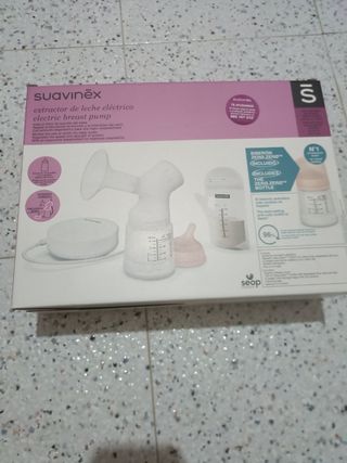 Sacaleches eléctrico de la marca Suavinex. Tiene sistema de soble regulacion de succion y previo de estimulacion. Esta completo. El tubito por donde pasa la leche es nuevo sin usar comprado en farmacia. El biberon tambien esta sin usar Lleva bolsa para guardar, tengo la caja y las instrucciones