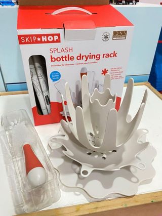 Escurridor de botellas Skip Hop Splash, con un diseño moderno y funcional. Incluye un cepillo para botellas. - Color blanco. - Diseño tipo flor. - Incluye cepillo para botellas. - Nuevo a estrenar Costo nuevo 55€ mas gastos de envio