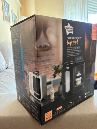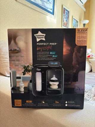 Máquina preparadora de biberones Tommee Tippee Perfect Prep Day & Night. Permite preparar un biberón a temperatura corporal en solo 2 minutos. Esta nuevo ya que no se ha usado porque se le ha dado el pecho. - Preparación rápida en 2 minutos. - Diseño Day & Night para uso diurno y nocturno. - Filtro antibacteriano. - Control de volumen.