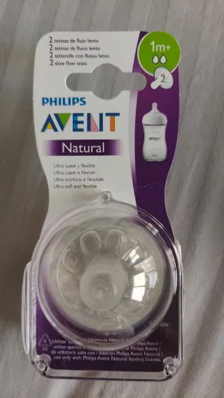 Pack de 2 tetinas Philips Avent Natural de flujo lento. - Diseñadas para una alimentación suave y flexible. - Compatibles con los biberones Philips Avent Natural.